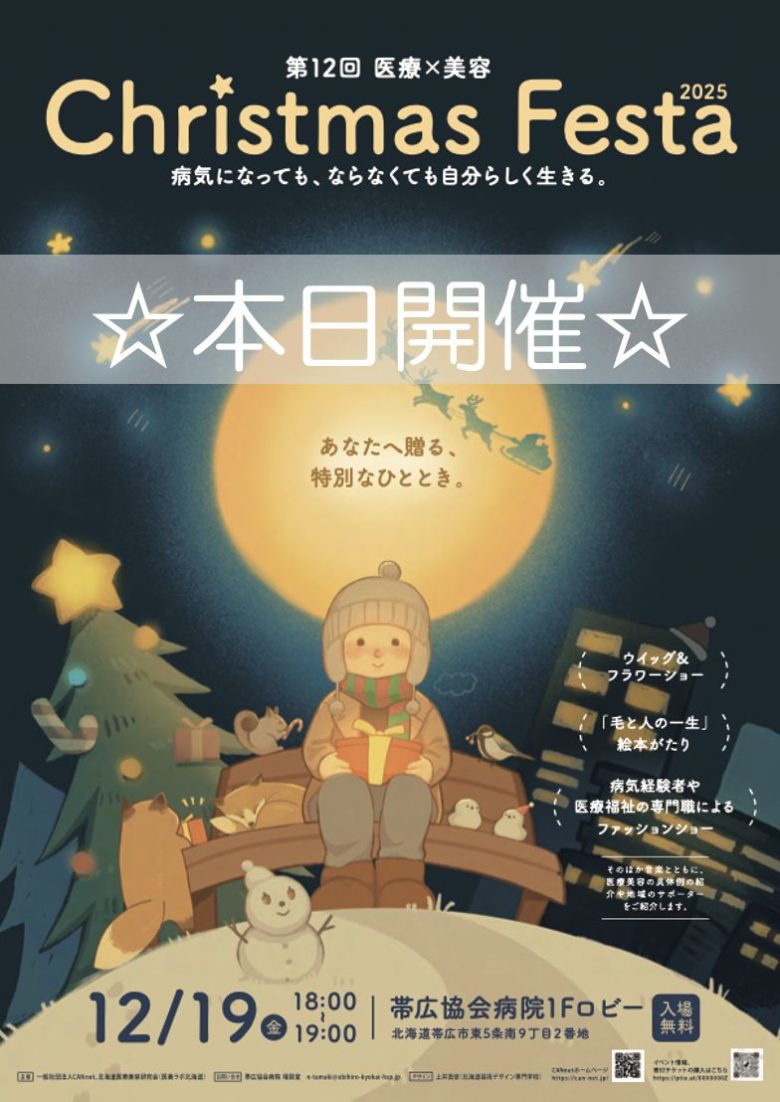 『医療×美容 Christmas Festa 2025』本日18時より帯広協会病院1階ロビーにて開催します!会場を提供して下さる帯広協会病院様改めて御礼申し上げます☆